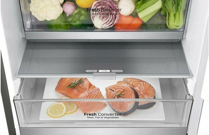 Оснащенный нижней морозильной камерой, холодильник LG является воплощением удобства и функциональности в элегантном корпусе. Управлять работой прибора можно с помощью сенсорной панели. Но есть и более удобный вариант – через приложение LG ThinQ. Используя телефон или планшет, вы сможете управлять холодильником на любом расстоянии: