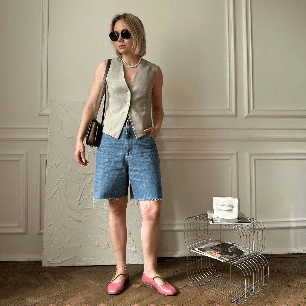 - Шорти (1-2 пари): Джинсові шорти – класика для денних прогулянок. Тканинні шорти (лляні, бавовняні, бермуди) – більш елегантний варіант.