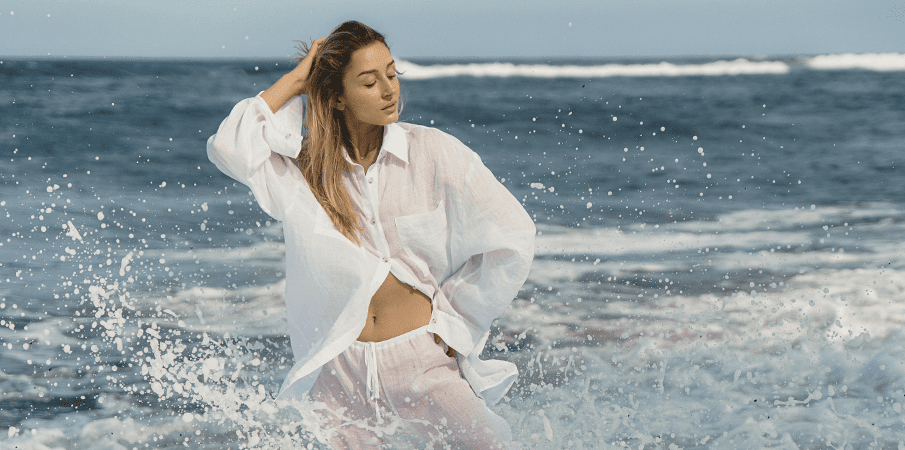 - Лляна або бавовняна сорочка (1 шт.): Must-have для відпустки! Її можна носити як самостійний верх, накидати на топ або купальник, зав’язувати на талії. Біла лляна сорочка – це класика.
