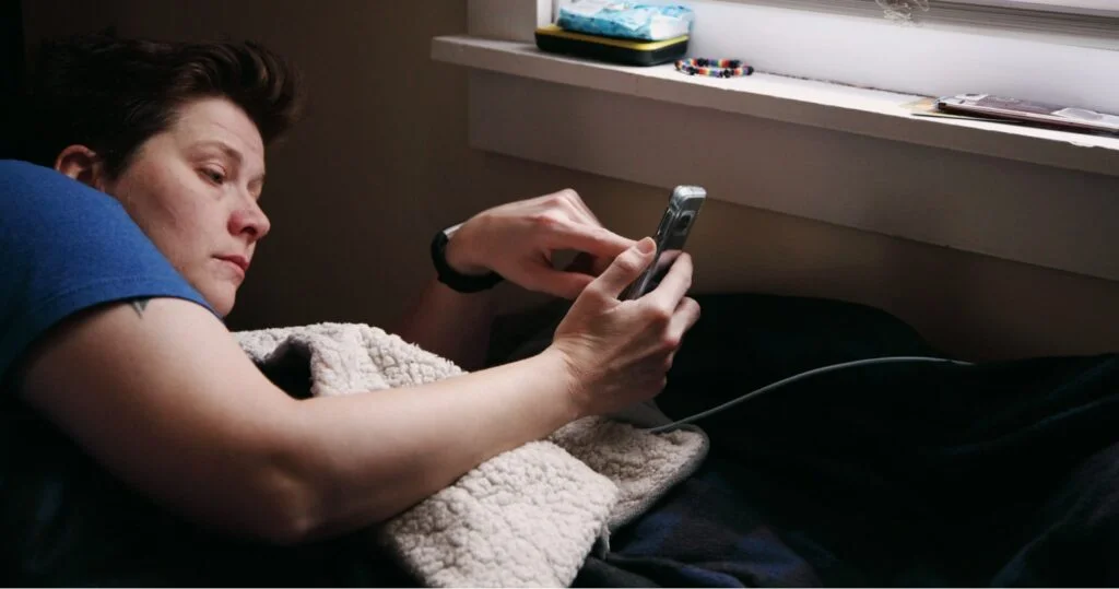 - Фізичне здоров’я. Синє світло, яке випромінюють екрани, пригнічує вироблення мелатоніну – гормону сну. Як результат – проблеми із засинанням та погана якість сну. Додайте до цього напругу очей, головні болі та проблеми з поставою, відомі як “техношия” (tech neck) – і отримаєте повний букет фізичних нездужань.