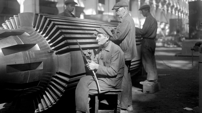 Частка робітників і службовців зростала. Наприклад, у 1920-30-х роках на кораблебудівельнях – таких, як Чорноморський суднобудівний завод (раніше “Наваль”) – працювали тисячі… Малярі, клепальники, котельники, машиністи носили зручний одяг. То був робочий комбінезон із грубої бавовни, куртку з ґудзиками та капелюхи-кепки. У залах заводських корпусів панували пил і сліди нафти, тому практичність перевищувала естетику. Часто такі костюми шили місцеві кравці.