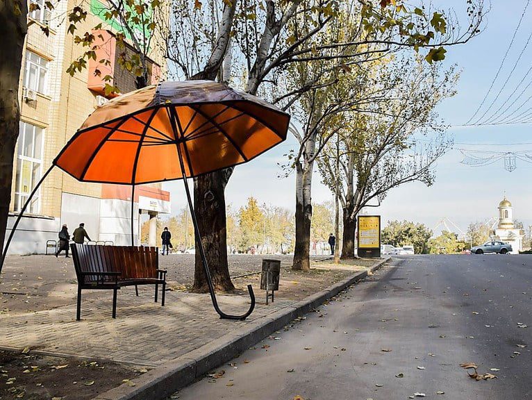 Така незвичайна парасолька-лавочка з’явилася на вулиці Соборній стала улюбленим об’єктом для відпочинку у містян і гостей Миколаєва. Її встановили, як прихисток від сонця, таке собі місце для відпочинку. А вона стала оригінальною фотозоною. І часто під ній можна побачити пари.