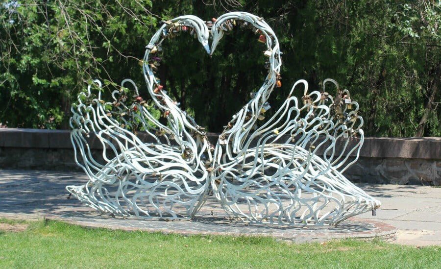 Тож приводьте кохану дівчину до цих лебедів і сміливо їй освідчуватись. Але не забудьте запастись замочком і маркером, щоб написати на ньому ваші ініціали. Ключ радимо віддати коханій, як справжній ключ від вашого серця.