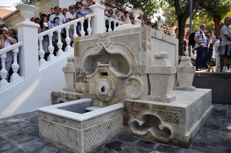 Згодом князь Григорій Потьомкін збудував поряд свій літній палац. Поряд облаштували фонтан, який живило Спаське джерело. Вважалось, що вода в ньому має цілющі властивості. Через якийсь час вже після смерті князя Потьомкіна, палац разом з фонтаном реставрували. Архітектор Карл Акройд обрав для нього “мавританський” стиль. Тож у народі фонтан прозвали “Турецьким”.
